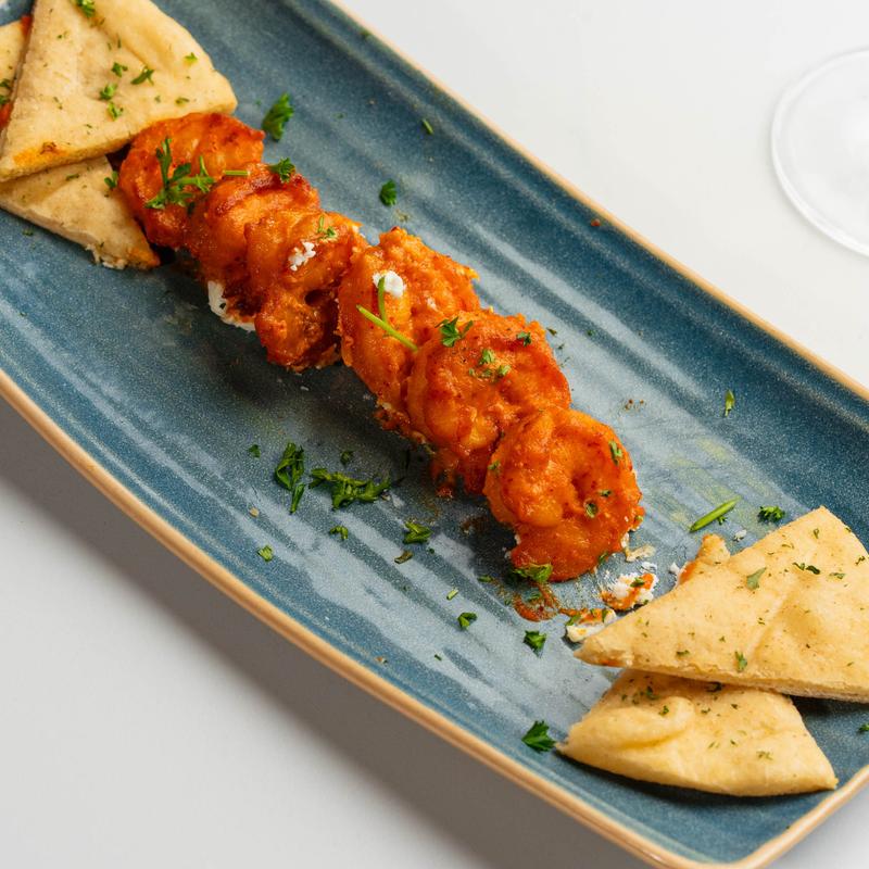 Garlic & herb marinated shrimp, peri peri sauce, goat cheese cream, and char-grilled pita bread.