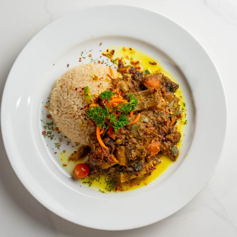 Tender Goat meat simmered in an aromatic blend of garlic, ginger, habanero, and curry spice. Served with coconut rice.