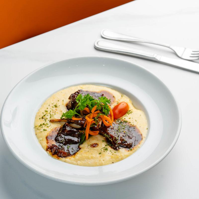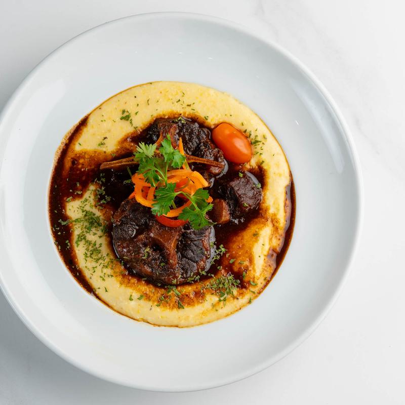 Southern braised oxtail over creamy grits & beer demi-glaze • Add Sausage +$3.00