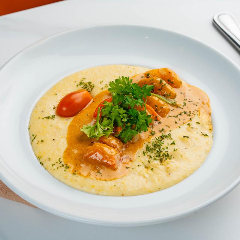 Herb-marinated shrimps over creamy grits, & beer demi-glaze • Add Sausage +$3.00
