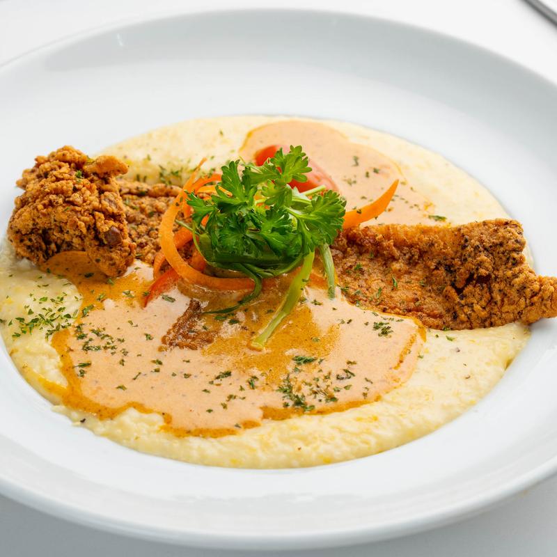 Crispy fried catfish fillet served on top of our creamy grits with a Cajun cream sauce • Add Sausage +$3.00